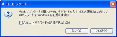 IDとパスワードを保存する場合は『はい』を、保存しない場合は『いいえ』をクリックしてください。