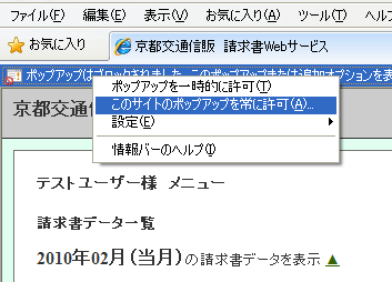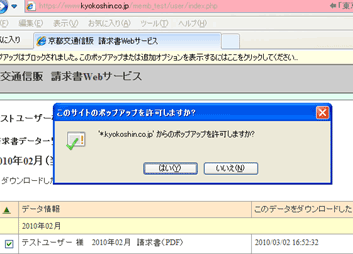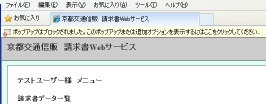 - 「ポップアップはブロックされました」と表示され、請求書データがダウンロードできません。